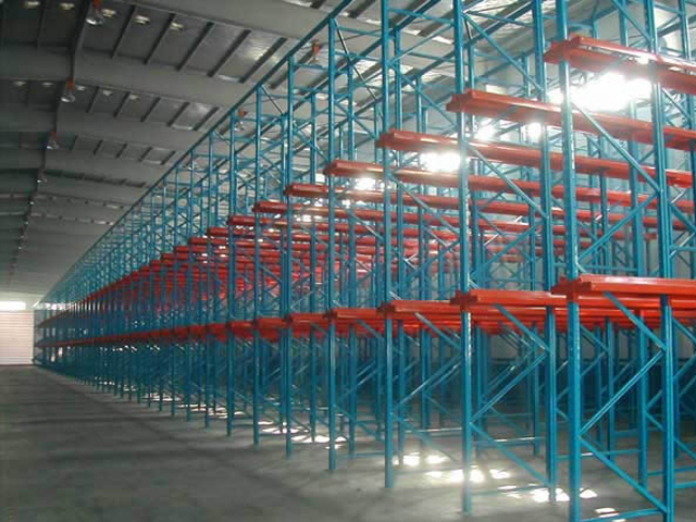 倉儲式貨架、貫通式貨架,都是采用格構(gòu)式立柱邊續(xù)方式連接起來的多門式、托盤單元化貨品沿深度方向一個緊接一個存儲在懸臂梁上的貨架結(jié)構(gòu)形式。這種模具架結(jié)構(gòu)形式可使叉車作業(yè)通道和貨品存儲空間共用,大大提高了倉庫的空間、場地面積利用率,但同一作業(yè)通道內(nèi)的貨品不能做到先進(jìn)先出,適合于大批量、少品種或作業(yè)通道內(nèi)的貨品一起流向同一客戶的貨品存儲,如飲料、乳制品、煙草、低溫冷凍倉儲、標(biāo)準(zhǔn)規(guī)格的家電、化工、制衣等行業(yè)。據(jù)統(tǒng)計,駛?cè)胧截浖芸梢赃_(dá)到最大的存儲密度,空間有效利用率最多可提高到90%,場地面積利用率可達(dá)60%以上!