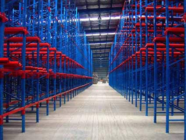 倉儲式貨架、貫通式貨架,都是采用格構(gòu)式立柱邊續(xù)方式連接起來的多門式、托盤單元化貨品沿深度方向一個緊接一個存儲在懸臂梁上的貨架結(jié)構(gòu)形式。這種模具架結(jié)構(gòu)形式可使叉車作業(yè)通道和貨品存儲空間共用,大大提高了倉庫的空間、場地面積利用率,但同一作業(yè)通道內(nèi)的貨品不能做到先進(jìn)先出,適合于大批量、少品種或作業(yè)通道內(nèi)的貨品一起流向同一客戶的貨品存儲,如飲料、乳制品、煙草、低溫冷凍倉儲、標(biāo)準(zhǔn)規(guī)格的家電、化工、制衣等行業(yè)。據(jù)統(tǒng)計(jì),駛?cè)胧截浖芸梢赃_(dá)到最大的存儲密度,空間有效利用率最多可提高到90%,場地面積利用率可達(dá)60%以上!