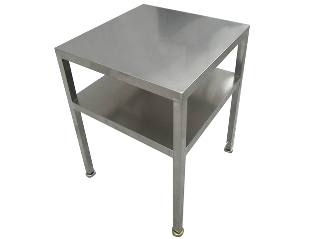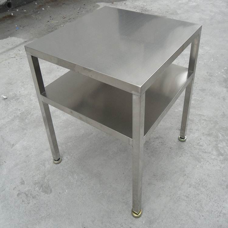 2、采用不銹鋼材質(zhì)結(jié)構(gòu),主要采用不銹鋼方通,不銹鋼板,工作臺底腳采用腳杯可上下調(diào)節(jié),以適應(yīng)不平地面,臺面可以鋪防靜電膠墊,達(dá)到防靜電效果,從而成為其中防靜電不銹鋼工作臺。有些可以鋪木板,增架承重量,然后包木板,包邊,采用正面排風(fēng),排風(fēng)板整體可拆卸。不銹鋼工作臺可以配光管,從而達(dá)到照明效果。